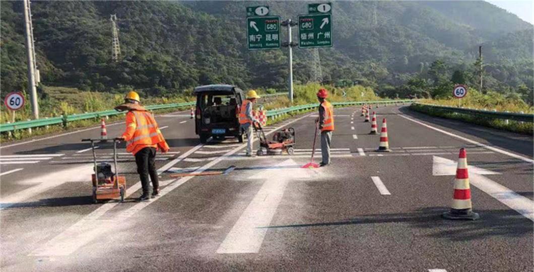 玉林-北海高速除線(玉鐵高速除線)工程是2019年合作的一個高速翻新標線項目,本次要求比較高,要先除去原標線,再重新標涂新的標線。
